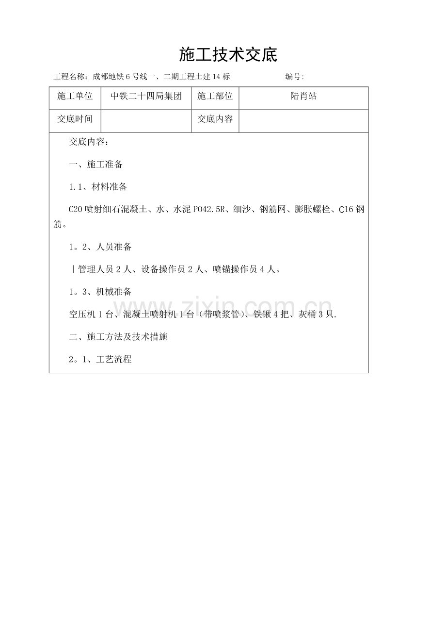 (1)挂网喷射混凝土必须由专业队伍施工,施工前技术人员对其进行技术交底.