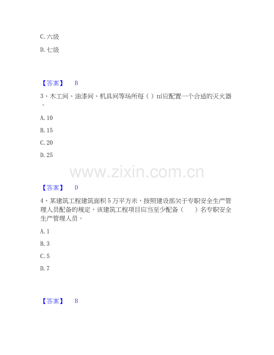 4、某建筑工程建筑面积5万平方米,按照建设部关于专职安全生产管理人员配备的规定,该建筑工程项目应当至少配备( )名专职安全生产管理人员。