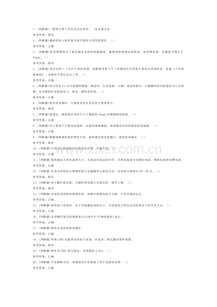 18、(判断题)单相220V电源供电的电气设备,应选用三极式漏电保护装置。