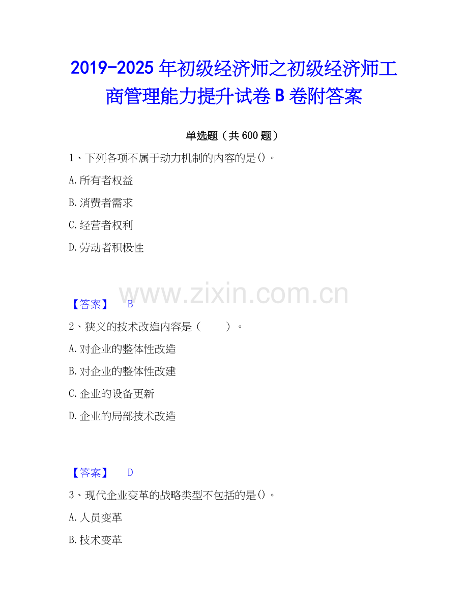 2019-2025年初级经济师之初级经济师工商管理能力提升试卷B卷附答案