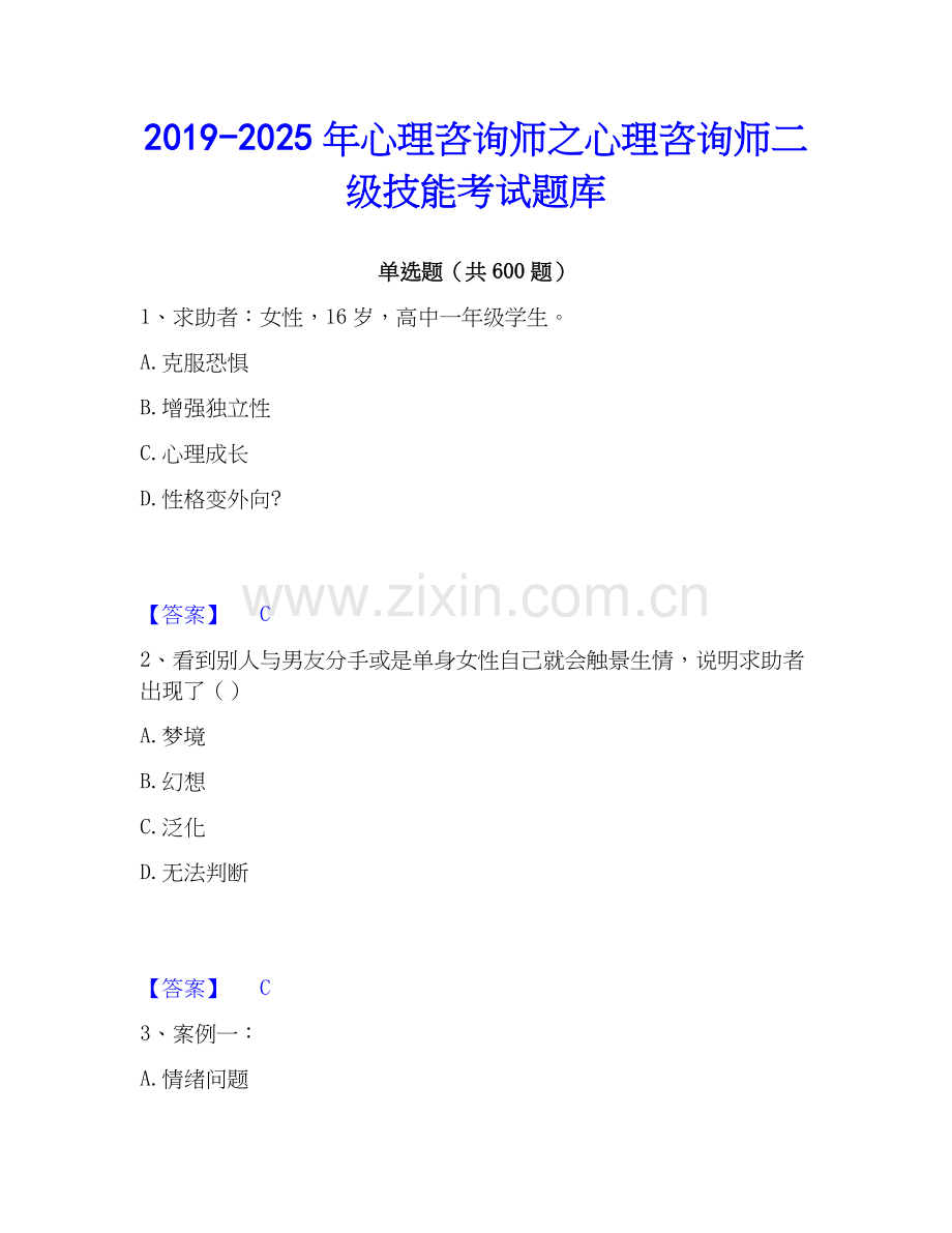 2019-2025年心理咨询师之心理咨询师二级技能考试题库