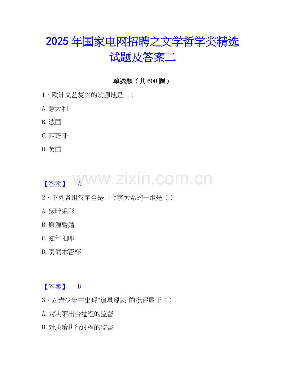2025年国家电网招聘之文学哲学类精选试题及答案二