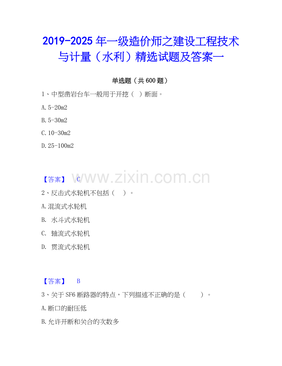 2019-2025年一级造价师之建设工程技术与计量(水利)精选试题及答案一