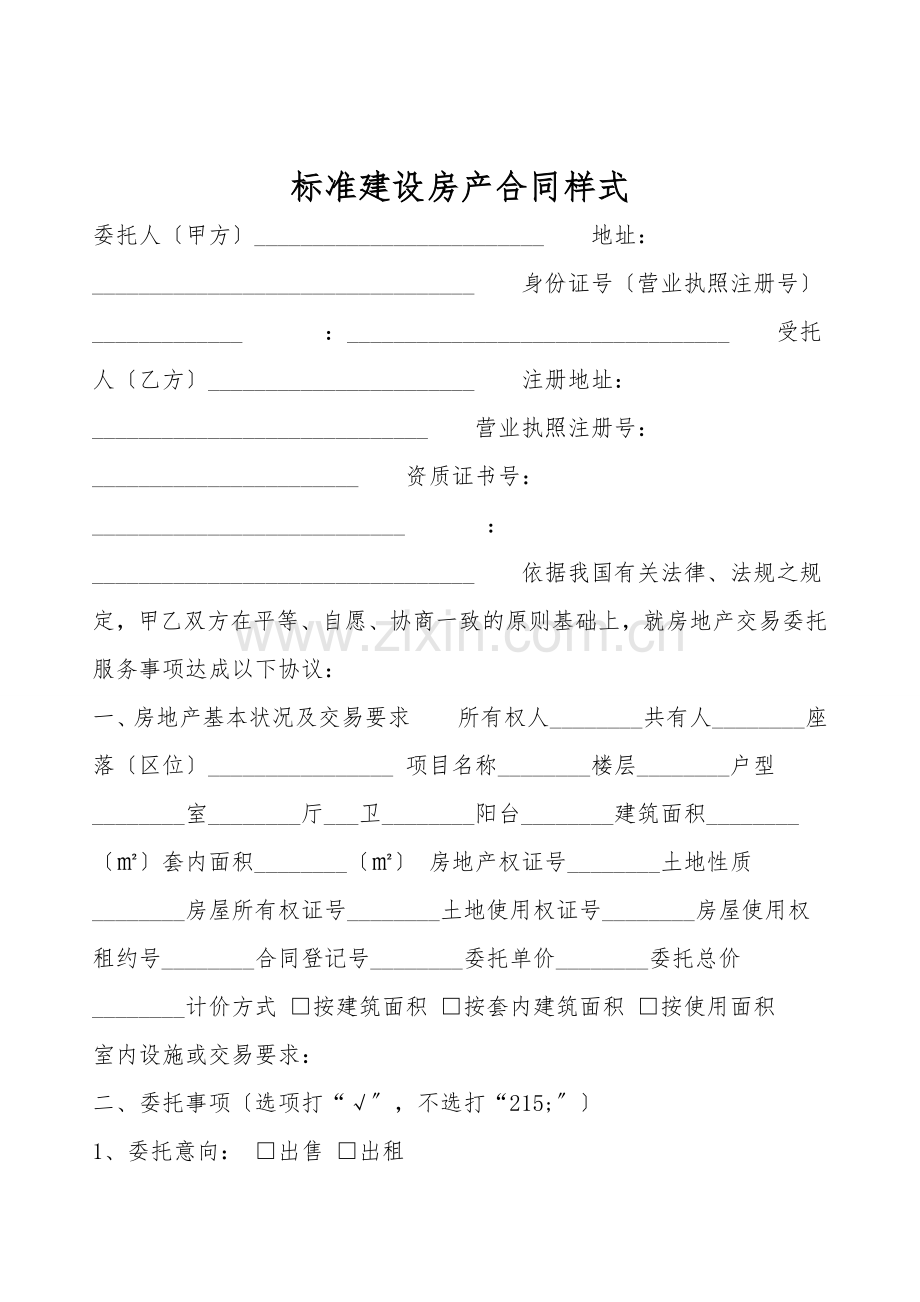 标准建设房产合同样式