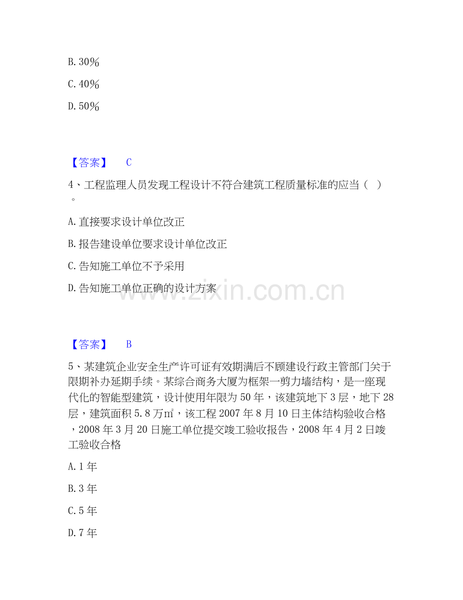 5、某建筑企业安全生产许可证有效期满后不顾建设行政主管部门关于限期补办延期手续。某综合商务大厦为框架一剪力墙结构,是一座现代化的智能型建筑,设计使用年限为50年,该建筑地下3层,地下28层,建筑面积5.8万㎡,该工程2007年8月10日主体结构验收合格,2008年3月20日施工单位提交竣工验收报告,2008年4月2日竣工验收合格