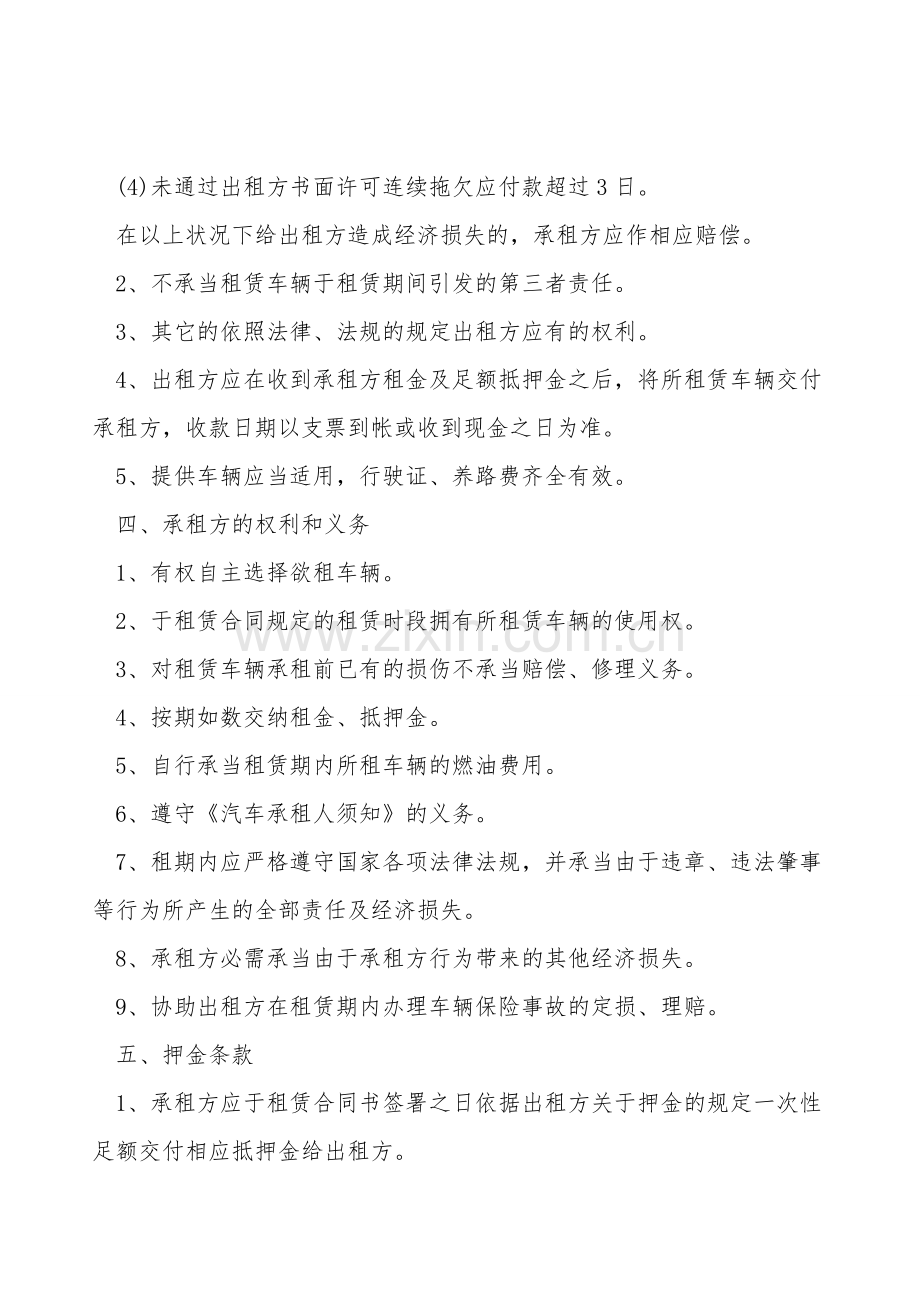 (3)从事其它有损出租方车辆合法权益的活动。