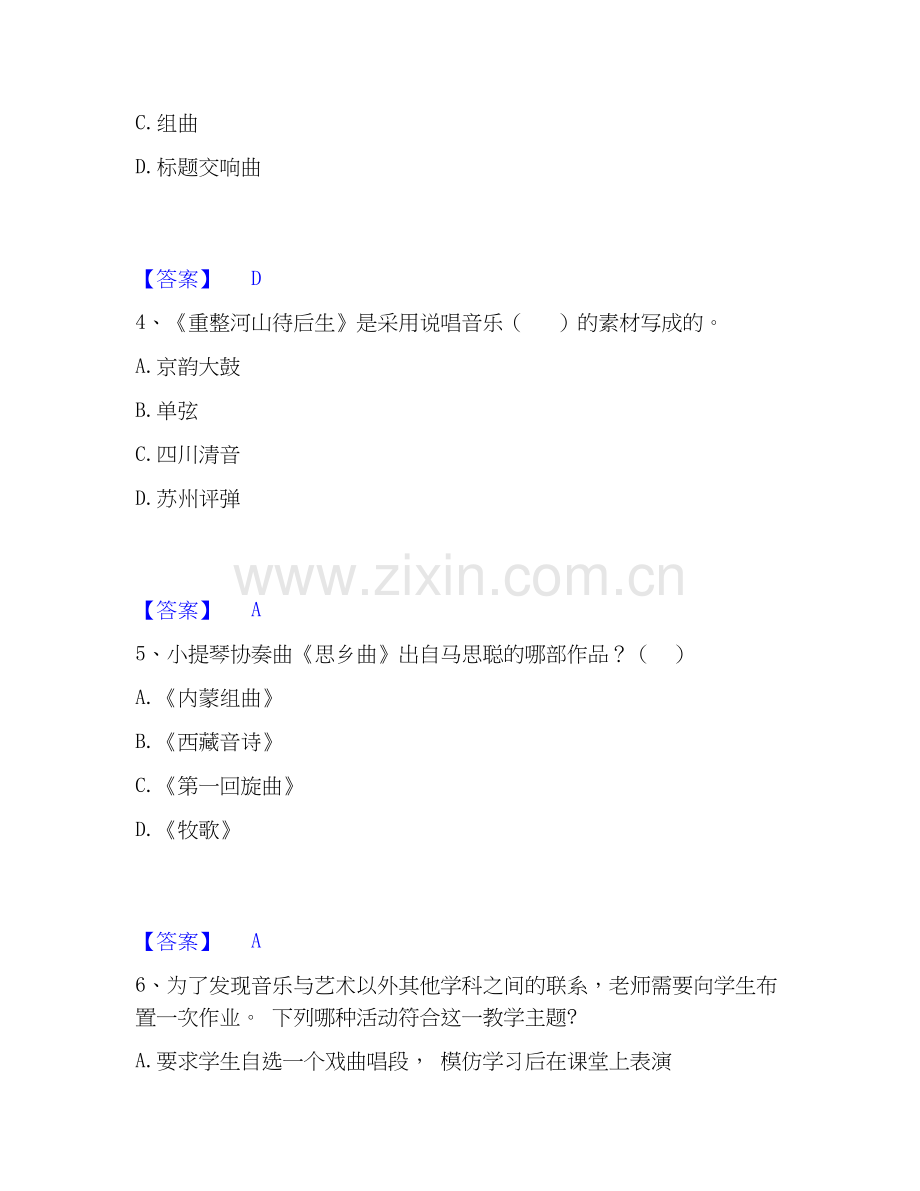 2019-2025年教师资格之中学音乐学科知识与教学能力能力测试试卷A卷附答案