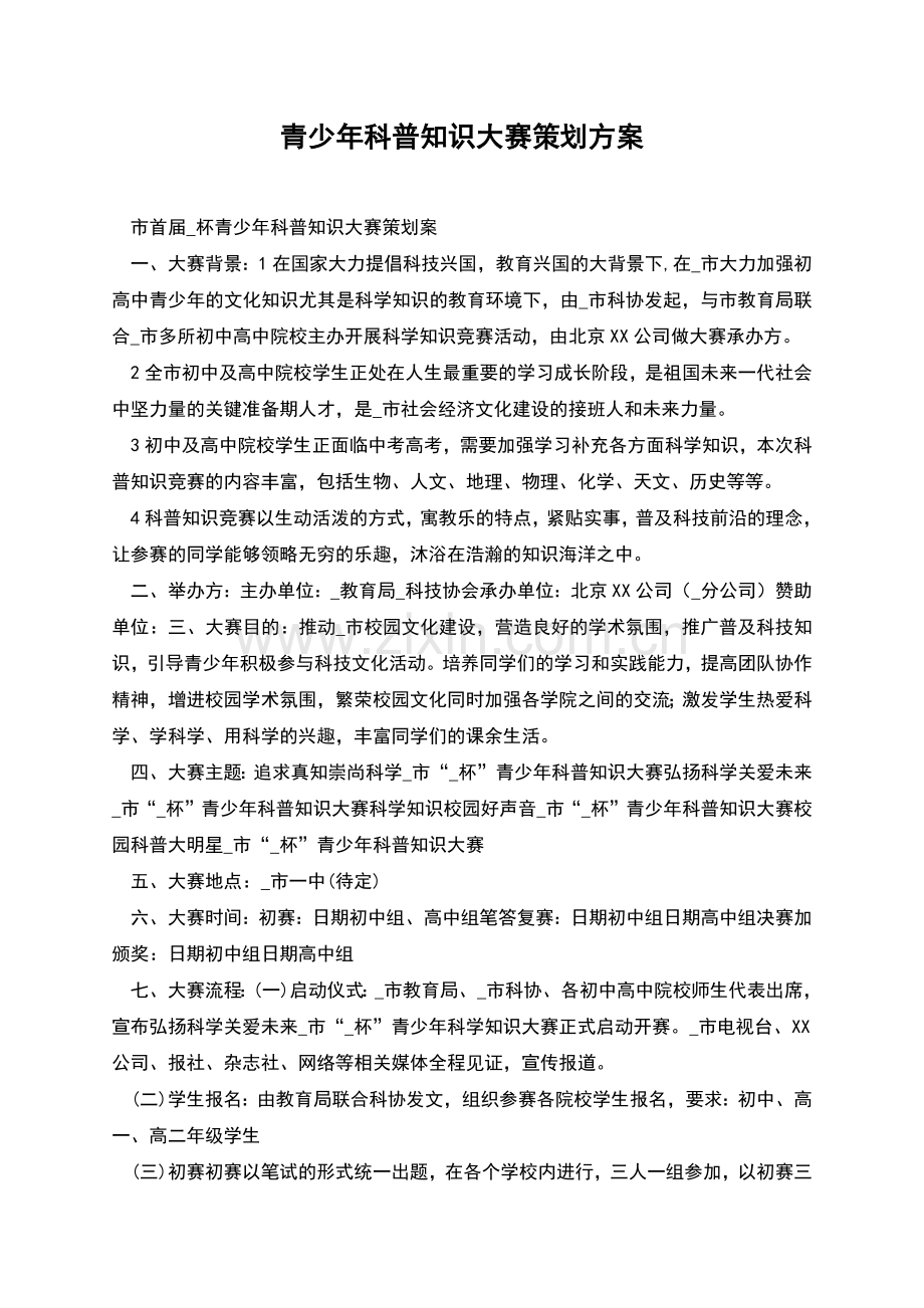 一、大赛背景:1在国家大力提倡科技兴国,教育兴国的大背景下,在_市大力加强初高中青少年的文化知识尤其是科学知识的教育环境下,由_市科协发起,与市教育局联合_市多所初中高中院校主办开展科学知识竞赛活动,由北京XX公司做大赛承办方。