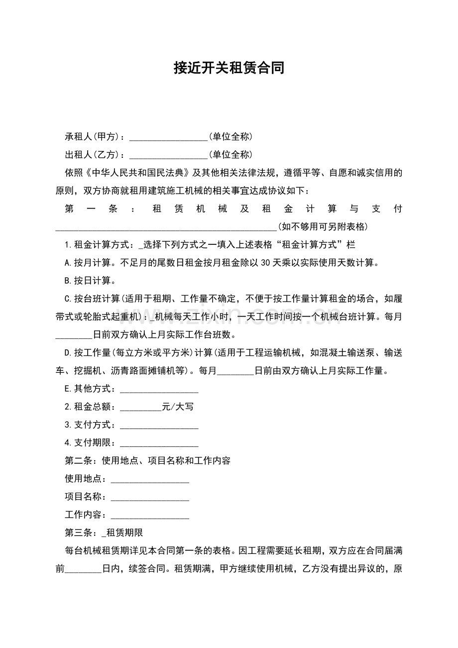 第一条:租赁机械及租金计算与支付________________________________________________(如不够用可另附表格)