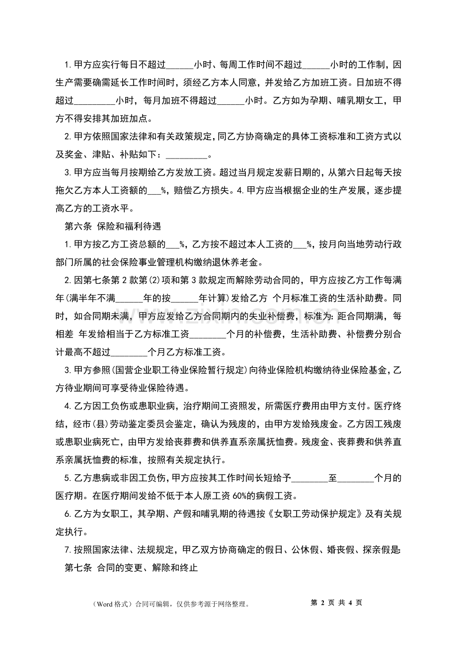7.合同期限届满,应即终止执行。由于生产、工作需要,经甲乙双方协商同意,可以续订合同。