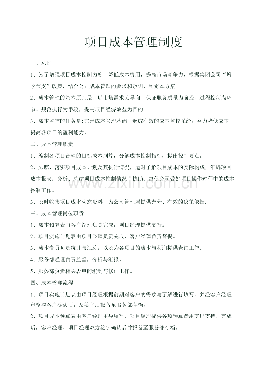 项目成本管理制度