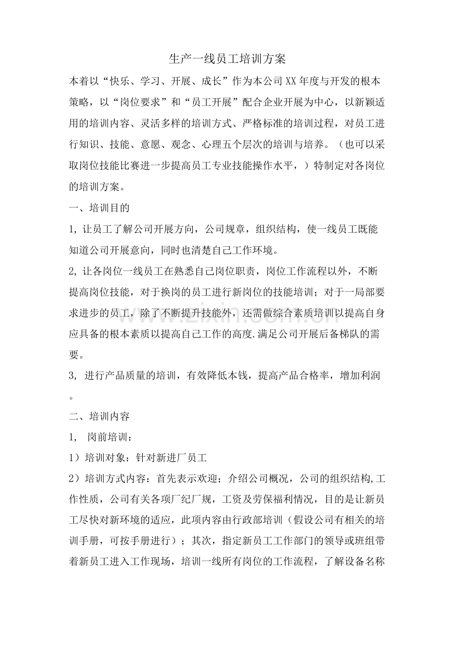 2)培训方式内容:利用生产现场,让部门负责人及班组负责人,通过案例分析法、讲授法,演示法、讨论法,比方:互相交流工作中存在的问题,用质量不合格产品做案例,分析原因,加强岗位员工工艺技能提升。