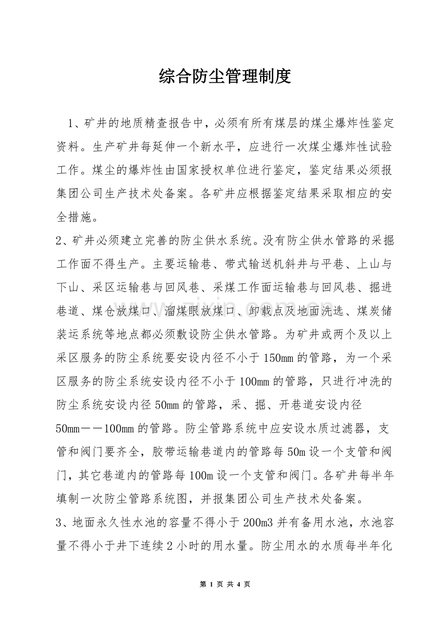 1、矿井的地质精查报告中,必须有所有煤层的煤尘爆炸性鉴定资料。生产矿井每延伸一个新水平,应进行一次煤尘爆炸性试验工作。煤尘的爆炸性由国家授权单位进行鉴定,鉴定结果必须报集团公司生产技术处备案。各矿井应根据鉴定结果采取相应的安全措施。