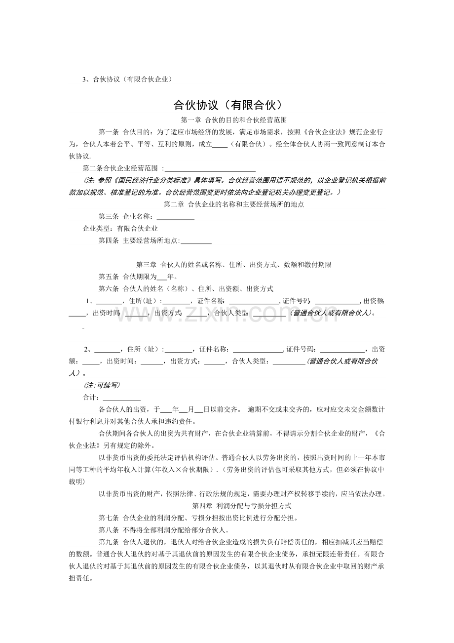 第一条 合伙目的:为了适应市场经济的发展,满足市场需求,按照《合伙企业法》规范企业行为,合伙人本着公平、平等、互利的原则,成立 (有限合伙)。经全体合伙人协商一致同意制订本合伙协议.