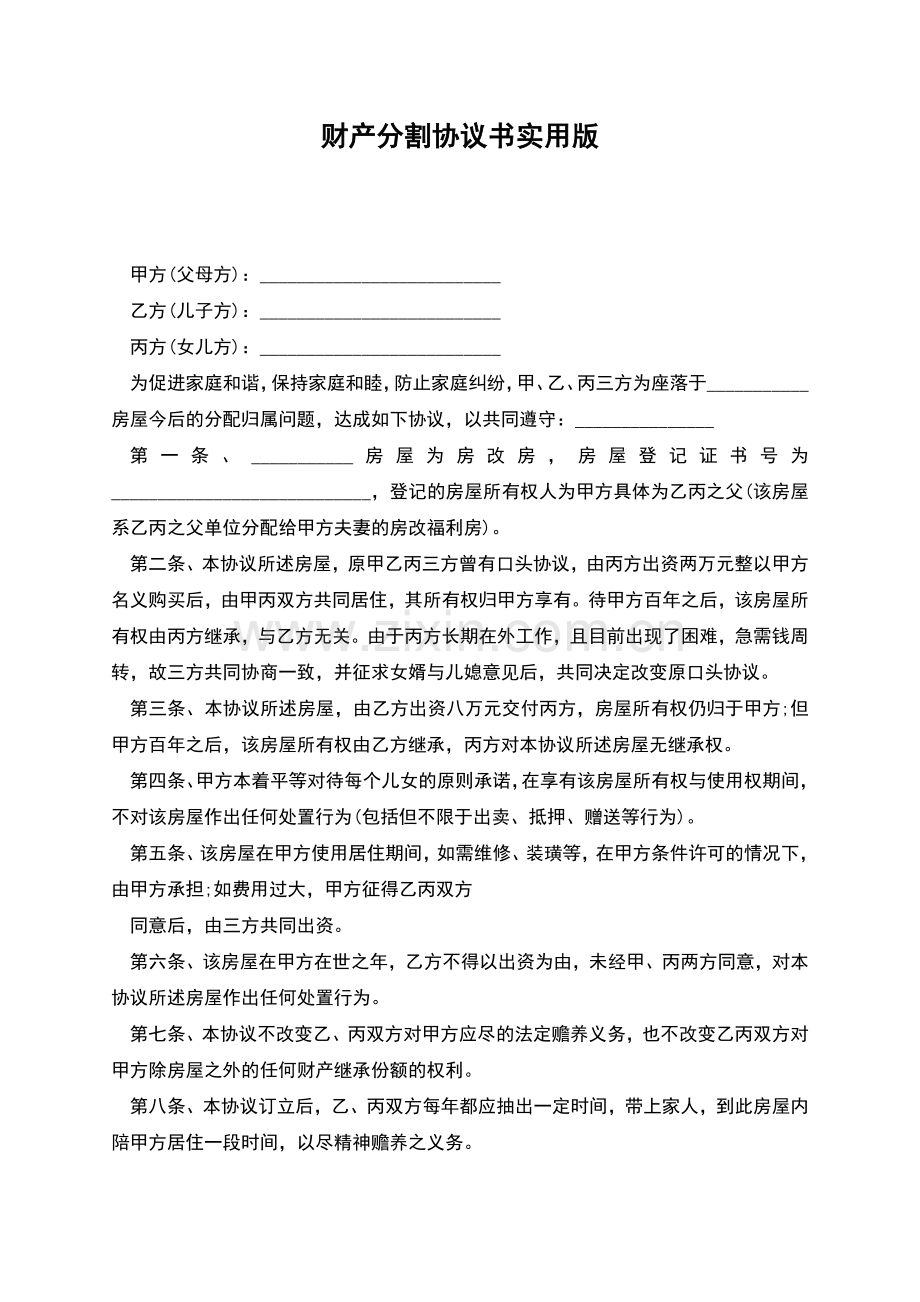 为促进家庭和谐,保持家庭和睦,防止家庭纠纷,甲、乙、丙三方为座落于___________房屋今后的分配归属问题,达成如下协议,以共同遵守:_______________