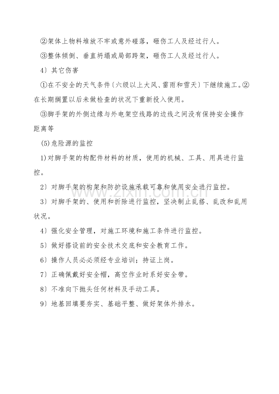 2〕对脚手架的构架和防护设施承载可靠和使用安全进行监控。