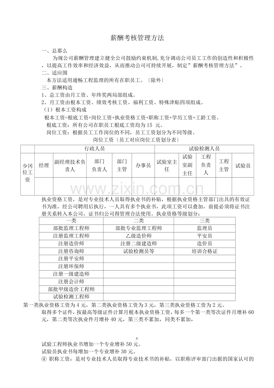 ④ 职称工资:是对专业技术人员取得专业技术书的补贴,以职称评审部门出据的国家认可的有效证件为准,经公司聘任执行。
