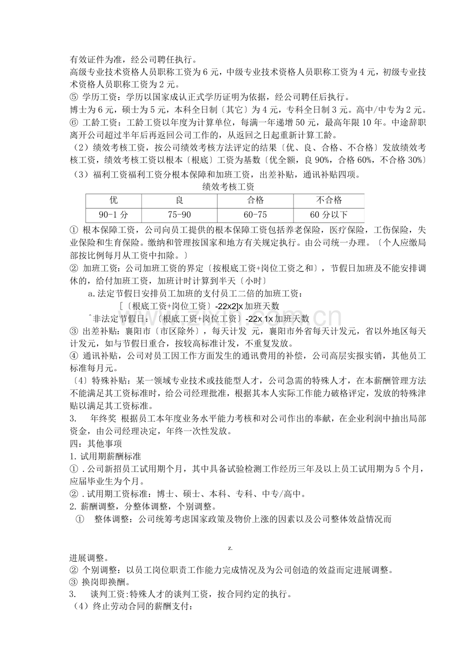 3. 谈判工资:特殊人才的谈判工资,按合同约定的执行。