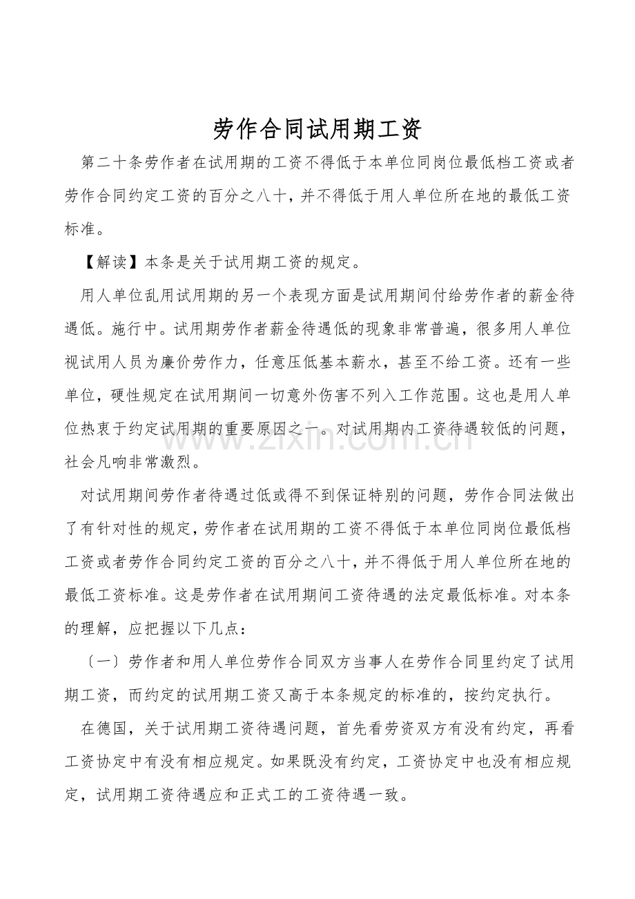 第二十条劳作者在试用期的工资不得低于本单位同岗位最低档工资或者劳作合同约定工资的百分之八十,并不得低于用人单位所在地的最低工资标准。