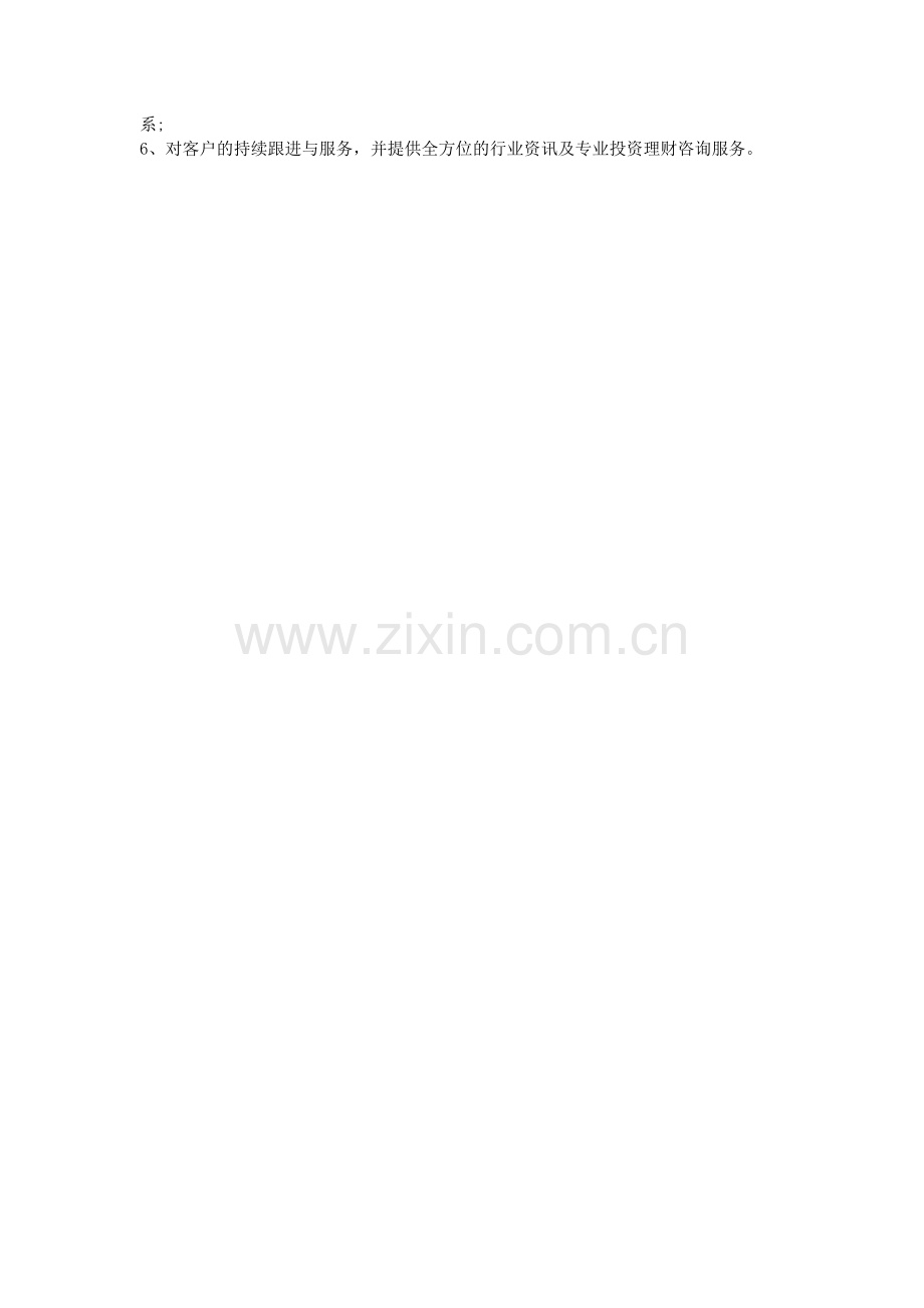 6、对客户的持续跟进与服务,并提供全方位的行业资讯及专业投资理财咨询服务。