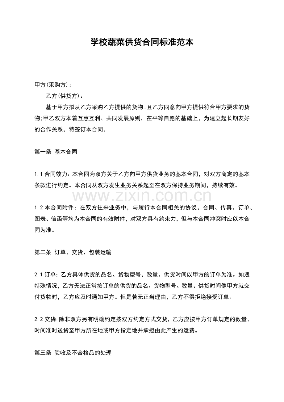 学校蔬菜供货合同标准范本