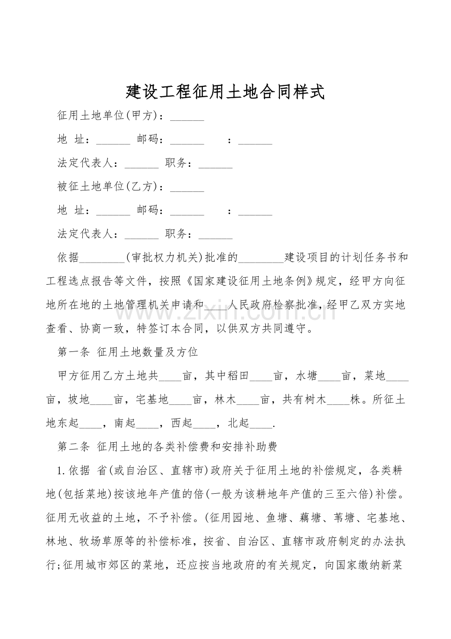 建设工程征用土地合同样式