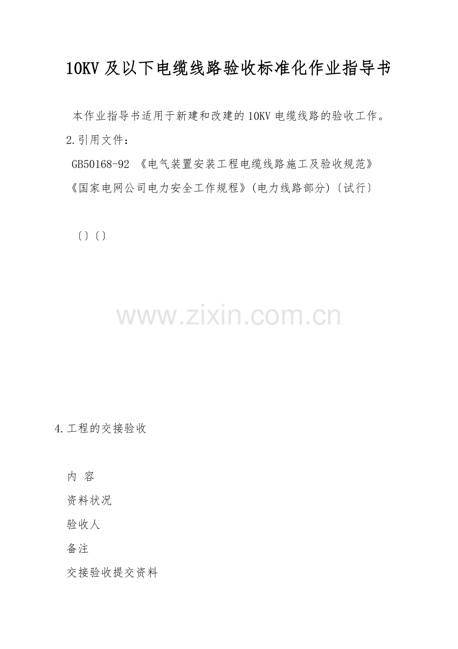 本作业指导书适用于新建和改建的10KV电缆线路的验收工作。
