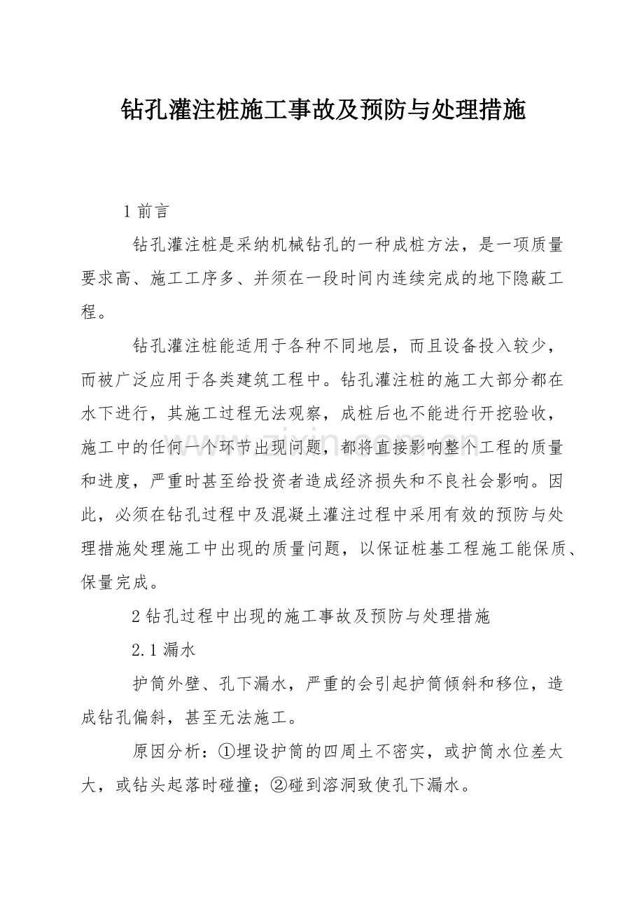 3混凝土灌注过程中出现的施工事故及预防与处理措施