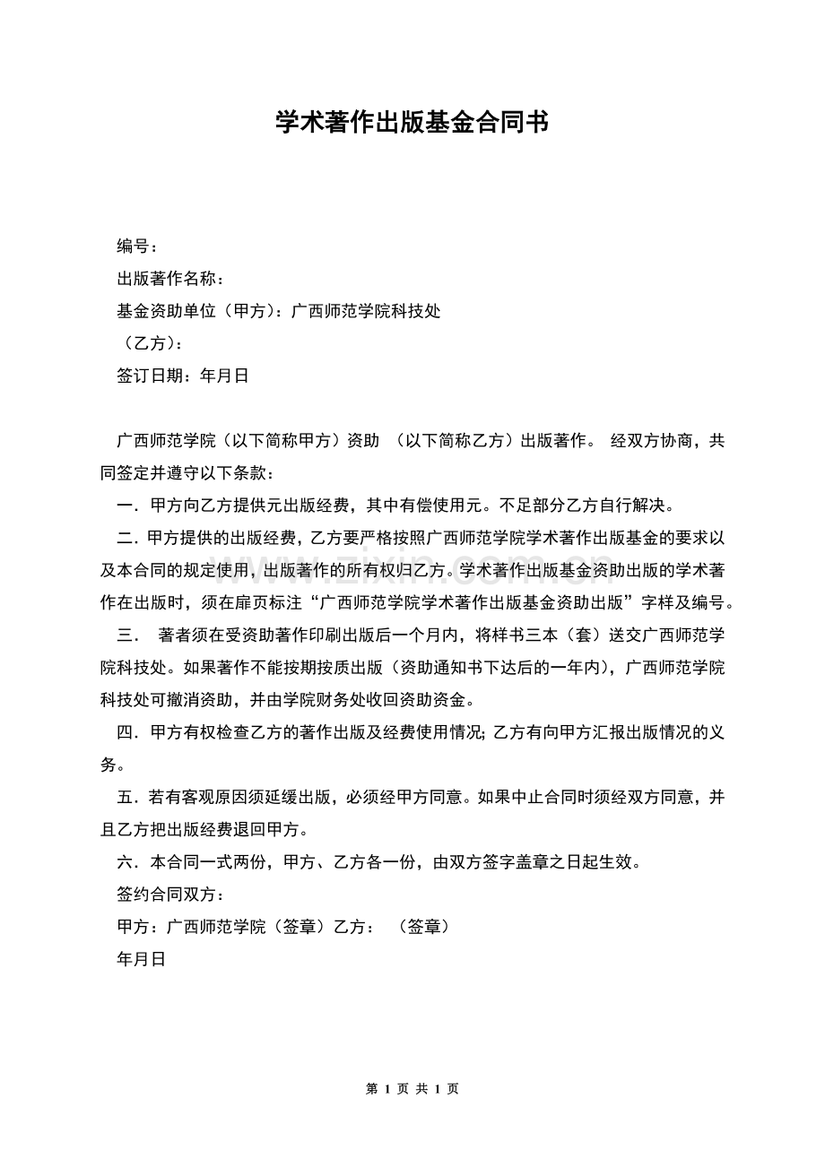 二.甲方提供的出版经费,乙方要严格按照广西师范学院学术著作出版基金的要求以及本合同的规定使用,出版著作的所有权归乙方。学术著作出版基金资助出版的学术著作在出版时,须在扉页标注“广西师范学院学术著作出版基金资助出版”字样及编号。