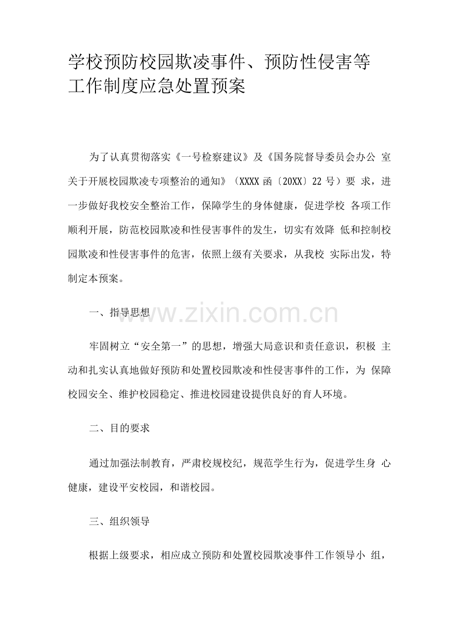 学校预防校园欺凌事件、预防性侵害等 工作制度应急处置预案