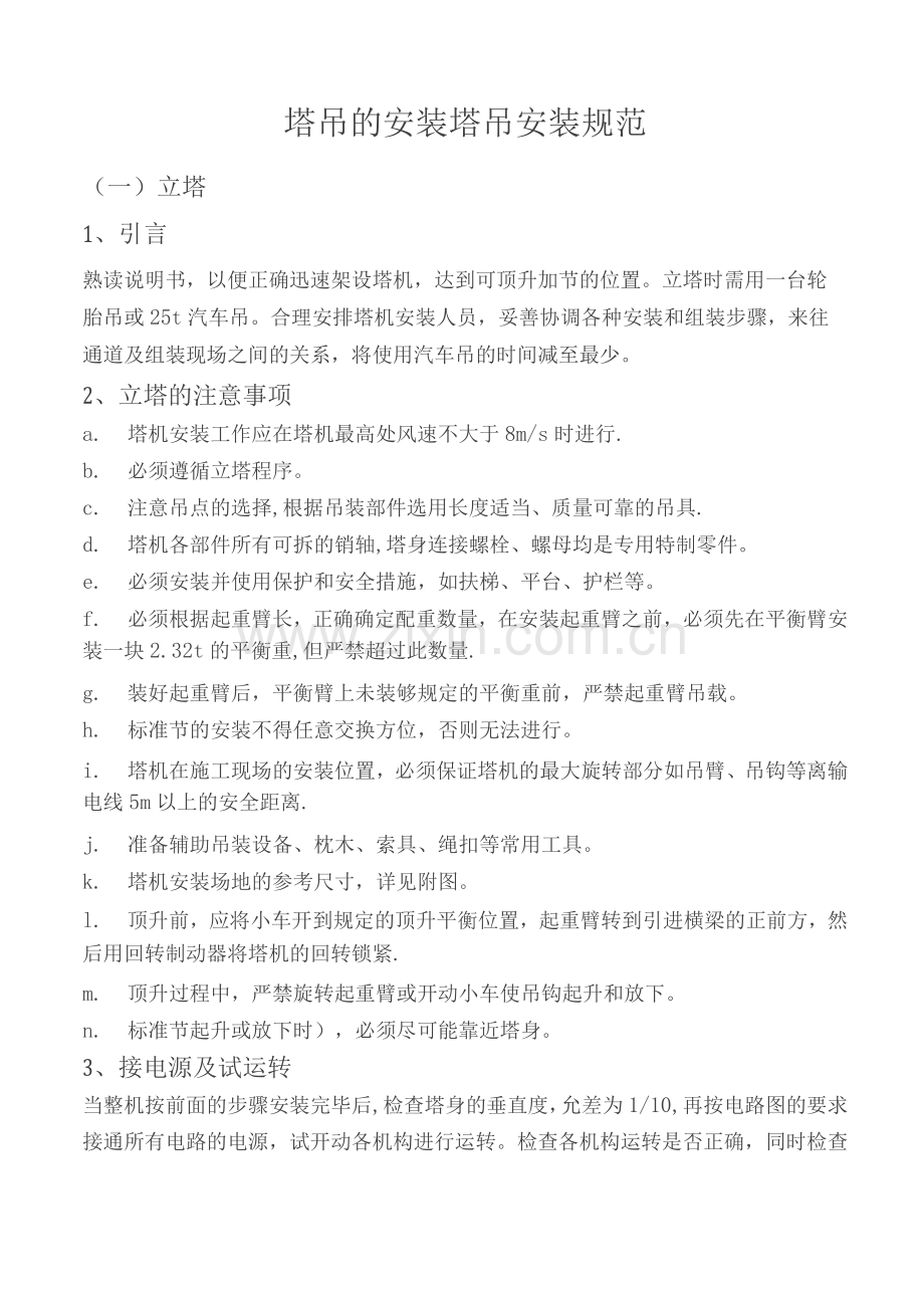 n. 标准节起升或放下时),必须尽可能靠近塔身。