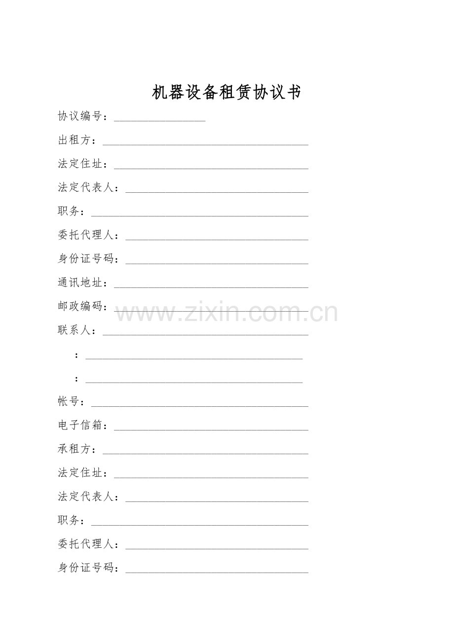 依据《合同法》及有关法律法规,为明确出租方与承租方的权利和义务,遵循平等、自愿、公平和诚信的原则,双方就_________机械租赁事宜协商一致,订立本协议。