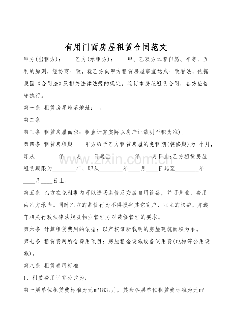有用门面房屋租赁合同范文