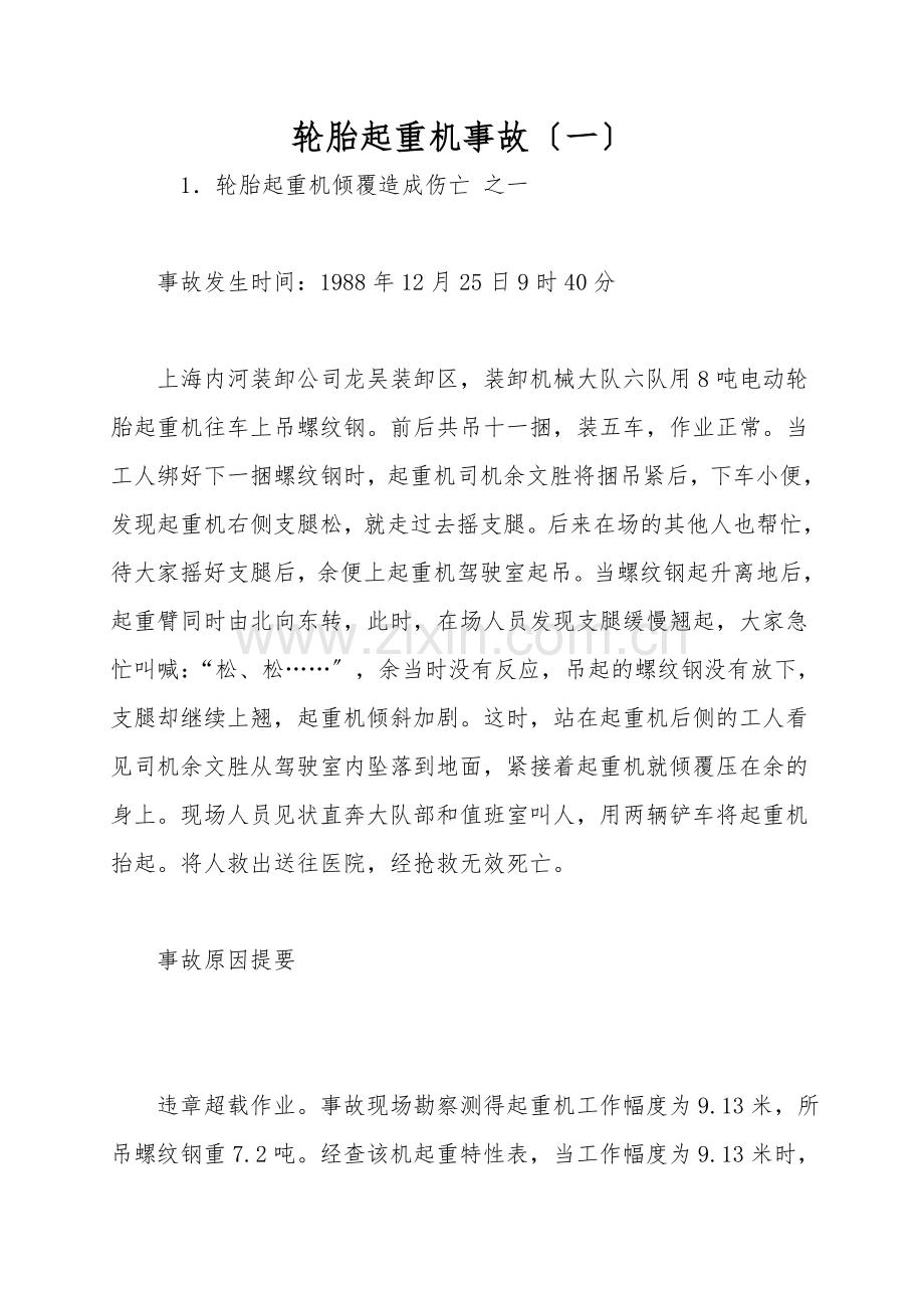 6.轮胎起重机吊载荷摇摆将人撞伤死亡