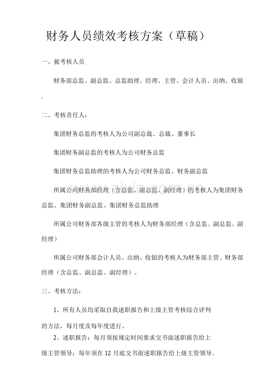 财务人员绩效考核方案(草稿)