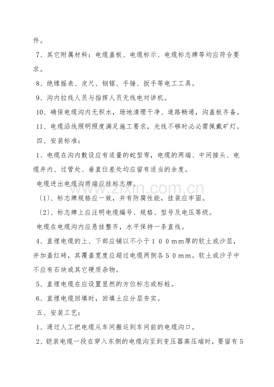 1、所有在电缆沟内铺设电缆的人员必必需带安全帽,带矿灯,带手套。