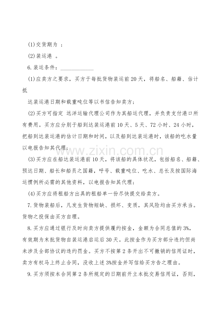 (4)买方应将租船方出具的租船单一份尽快提交给卖方。