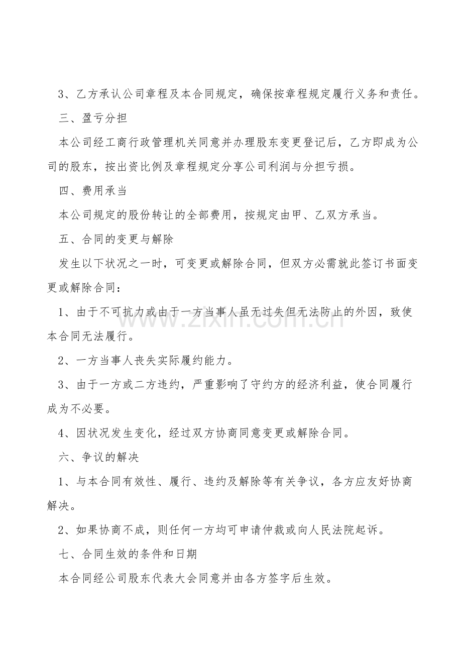 股份转让协议样书