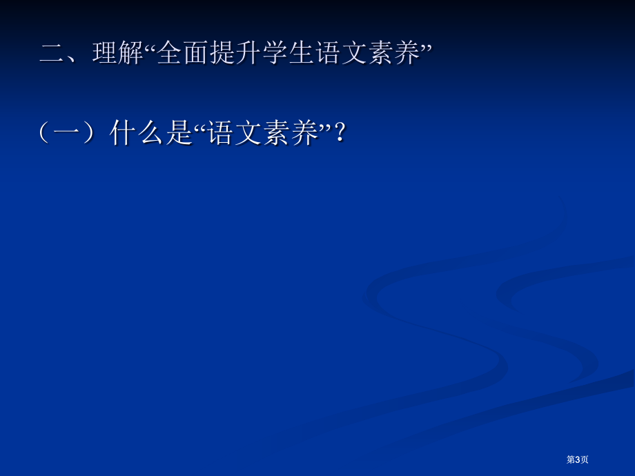 ,*,单击此处编辑母版标题样式,单击此处编辑母版文本样式,第二级,第三级,第四级,第五级,语文课程基本理念,第1页,第1页,(一)全面提升学生语文素养。,(二)正确把握语文教育特点。,(三)积极提倡自主、合作、探究学习方式。,(四)努力建设开放而有活力语文课程。,一、语文课程基本理念,第2页,第2页,二、理解“全面提升学生语文素养”,(一)什么是“语文素养”?,第3页,第3页,语文素养(修改稿),语文课程应激发和哺育学生热爱祖国语文思想感情,引导学生丰富语言积累,培养语感,发展思维,初步掌握学习语文基本办法,养成良好学习习惯,使他们含有适应实际需要识字写字能力、阅读能力、写作能力、口语交际能力,正确地理解和利用祖国语文。同时,语文课程还应通过优秀文化熏陶感染,提升学生思想道德修养和审美情趣,使他们逐步形成良好个性和健全人格,增进德、智、体、美诸方面友好发展。,第4页,第4页,(二)要落实“全面提升学生语文素养”精神,必须预防和避免前述两种倾向。,(三)在实际教学中应注意问题。,讨论:那么,如何提升学生语文素养呢?,第5页,第5页,新课程学生观,学生是,有生命,种子,播撒在肥沃土地里,我们给他充足阳光、空气和水分,让他,有个性,地生长。,第6页,第6页,三、对“正确把握语文教育特点”这一理念理性结识,(一)对于“正确把握语文教育特点”,应当把握几种方面:,1、三大方面:,语文课程人文性和学生反应多元性,语文课程实践性和学生语文实践能力,汉语言文字特点和学生良好语感以及整体把握能力,第7页,第7页,2、三种角度:,从语文课程内容与学生互相关系角度来讲,从该课程实行过程角度来讲,从汉语言文字特点与学生互相关系角度来界定,3、两大特性:,主观性,客观性,三、对“正确把握语文教育特点”这一理念理性结识,第8页,第8页,在语文教学中应当把握好下列四点:,1、应当注重语文熏陶感染作用。,2、应着重培养学生语文实践能力。,3、应当让学生更多地直接接触语文材料,在大量语文实践中掌握利用语文规律。,4、还应考虑汉语言文字特点对识字写字、阅读、写作、口语交际和学生思维发展等方面影响,要注重培养良好语感和整体把握能力。,第9页,第9页,(二)对“正确把握语文教育特点”这一理念实践摸索,1学生反应多元性。,2学生语文实践能力。,3学生良好语感。,4学生整体把握能力。,第10页,第10页,语文教学必须注意:,1、语文课程必须依据学生身心发展和语文学习特点,关注学生个体差异和不同学习需求,爱护学生好奇心、求知欲,充分激发学生主动意识和进取精神,提倡自主、合作、探究学习方式。,2、语文综合性学习有利于学生在感兴趣自主活动中全方面提升语文素养,是培养学生主动探究、团结合作、勇于创新精神主要路径,应该主动提倡。,四、积极提倡自主、合作、探究学习方式,第11页,第11页,所谓“自主学习”,是相对于被动学习(机械学、他主学习)而言,是指“自我导向、自我激励、自我监控”学习。其基本特性有:,学习者参与拟定对自己故意义学习目的,自己制定学习进度,参与设计评价指标;,学习者积极发展各种思维策略和学习策略,在处理问题中学习;,学习者在学习过程中有情感投入,学习过程有内在动力支持,能从学习中取得积极情感体验;,学习者在学习过程中对认知活动能够进行自我监控,并作出相应调适。,第12页,第12页,所谓“合作学习”,是相对于“个体学习”与“竞争学习”而言,是指学生在小组或团队中为了完毕共同任务,有明确责任分工互助性学习。其基本特性有:,积极承担在完毕共同任务中个人责任;,积极互相支持、配合,尤其是面对面增进性互动;,基于各人完毕任务进行小组加工。,(关于合作学习误区及注意事项),第13页,第13页,所谓“探究学习(发觉学习)”,是相对于“接受学习”而言,是指从学科领域或现实社会生活中选择和拟定研究主题,在教学中创设一个类似于学术(或科学)研究情境,通过学生自主、独立地发觉问题、试验、操作、调查、信息搜集与处理、表示与交流等摸索活动,取得知识、技能,发展情感与态度,尤其是摸索精神和创新能力发展学习方式和学习过程。其基本特点是,问题性、实践性、参与性,和,开放性。,第14页,第14页,课堂教学讨论,讨论一:语文课程原则为何要积极提倡“合作”学习方式?,讨论二:语文课程原则为何要提倡“探究性”学习方式?,第15页,第15页,教学案例分析,学生甲说:我知道猫会抓老鼠,我很喜欢它。,学生乙说:我看见猫毛黑白相间,摸起来很光滑,也较好看,我很喜欢它。,学生丙说:我喜欢吃鱼,猫也喜欢吃鱼,我们都喜欢吃鱼。吃饭时,我把碗里鱼给猫吃,它仰着头“喵喵”地叫,仿佛说,谢谢你!我和猫是好朋友。,第16页,第16页,第一个学生是从猫作用来谈,他喜欢猫是基于“告诉”取得知识。,第二个学生是从猫外形来谈,他喜欢猫是通过感知取得经验。,第三个学生是从“我”和“猫”有共同兴趣兴趣上谈,他喜欢猫,是一个情感自我体验。,第17页,第17页,修改后教学提议:,自主合作探究学习方式与故意义接受性学习相辅相成。,教师是学习活动组织者和引导者。应转变观念,更新知识,,钻研教材,,不断提升本身综合素养。应创造性地理解和使用教科书,积极开发课程资源,,精心设计教学方案,,灵活利用各种教学策略,引导学生在实践中学会学习。,第18