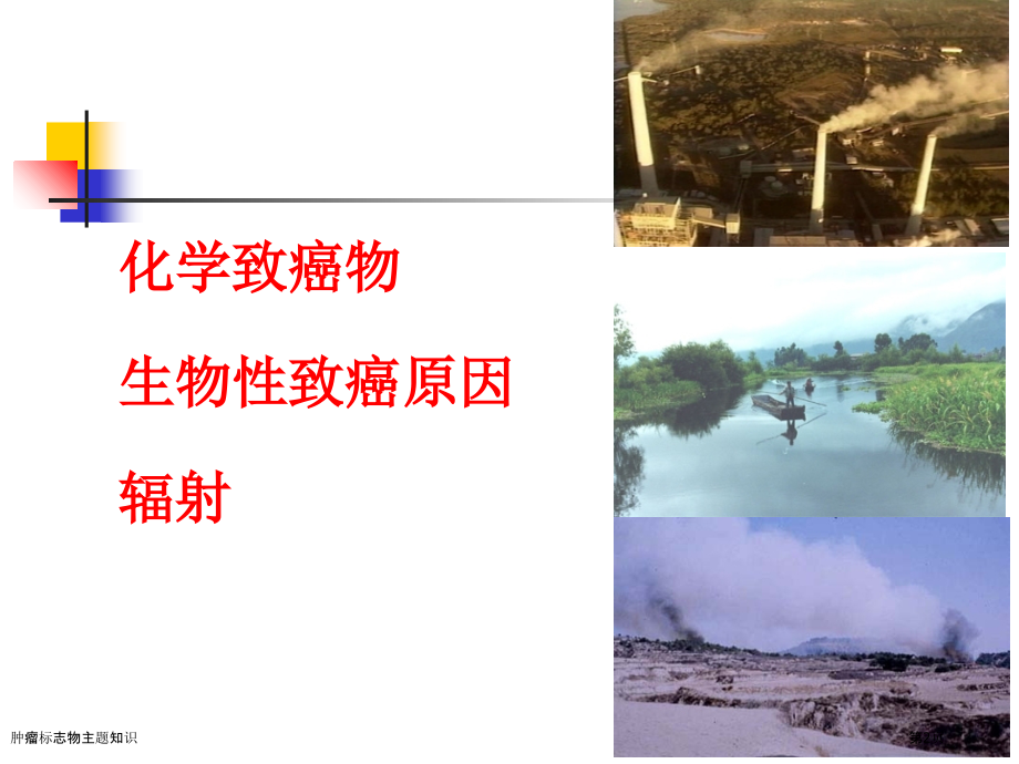 ,单击此处编辑母版标题样式,单击此处编辑母版文本样式,第二级,第三级,第四级,第五级,#,肿瘤标志物主题知识,肿瘤标志物主题知识,第1页,化学致癌物,生物性致癌原因,辐射,肿瘤标志物主题知识,第2页,第十七章,肿瘤标志物,肿瘤标志物主题知识,第3页,本章内容概要,第二节 肿瘤标志物测定,第一节 概述,1,、,掌握,肿瘤标志物概念、种类,2,、,熟悉,肿瘤标志物检测方法,本章教学要求:,3,、,了解,肿瘤标志物临床意义,肿瘤标志物主题知识,第4页,第一节 概 述,一、肿瘤标志物概念,肿瘤标志物是指有肿瘤细胞产生,存在于细胞、组织、血液或其它体液中,反应肿瘤存在和生长一类物质。,包含:,蛋白质、激素、酶和多胺,等。,检测方法常见:,RIA,、,ELISA,、,CLIA,等高灵敏度方法,肿瘤标志物主题知识,第5页,肿瘤标志物条件:,特异性,能在体液、细胞或组织抽提物中检出,与肿瘤生长、消退、相关,肿瘤标志物应用:,肿瘤普查,肿瘤高危人群筛选,肿瘤诊疗和判别诊疗,肿瘤监测,肿瘤分类、分期、定位,治疗,肿瘤标志物主题知识,第6页,二、肿瘤标志物分类,肿瘤胚胎性抗原标志物,糖类标志物,酶类标志物,激素类标志物,基因类标志物,其它,肿瘤标志物主题知识,第7页,第二节 肿瘤标志物测定,一、胚胎性抗原标志物,名称 性质 相关肿瘤,甲胎蛋白,癌胚抗原,癌胚铁蛋白,-,癌胚抗原,组织多肽抗原,胰癌胚抗原,鳞状细胞抗原,糖蛋白,糖蛋白,糖蛋白,糖蛋白,细胞角蛋白,糖蛋白,糖蛋白,肝细胞、胚细胞,结肠、直肠、胰腺、肺、乳腺,肝,结肠,乳腺、结肠,胰腺,肺、皮肤、头和颈部,肿瘤标志物主题知识,第8页,(一)甲胎蛋白(,-fetoprotein,,,AFP,),AFP,是胎儿发育早期,由胎肝细胞和卵黄囊合成糖蛋白,其分子量,70000,,含糖,4%,,电泳时位于,1,球蛋白位置,是胎儿血清中主要蛋白质。妇女在妊娠期体内,AFP,水平较高。,【,参考范围,】,10,30g/L,(,反向间接血凝法,),10,30g/L,(,ELISA,),20g/L,(,RIA,),10.9g/L,(,微粒子酶免法,MEIA,),肿瘤标志物主题知识,第9页,【,临床意义,】,(,1,)原发性肝癌:,80%,以上原发性肝癌病人可检测到血清中,AFP,显著升高,血清,AFP,100g/L,有诊疗意义。肝癌诊疗标准:,AFP,大于,500,g/L,连续,4,周,AFP,由低浓度逐步升高而不下降,AFP,在,200g/L,以上中等水平连续,8,周,AFP,增高还可见于睾丸肿瘤、卵巢肿瘤、胃癌、食道癌、胰腺癌等。,一些非恶性肝脏病变,如病毒性肝炎、新生儿肝炎、肝硬化以及囊性纤维病变、运动失调性毛细血管扩张症、高酪氨酸血症及孕妇血清中,AFP,含量可升高。,肿瘤标志物主题知识,第10页,(二)癌胚抗原(,carcinoembryonic,,,CEA,),CEA,是一个分子量为,00,左右可溶性复杂糖蛋白。普通情况下,,CEA,由胎儿消化道上皮、肝脏和胰脏细胞所合成,通常在妊娠前,6,个月内,CEA,含量增高,出生后正常组织内含量少。,【,参考范围,】,2.5g/L,(,EIA,),2.5,g/L,(,RIA,),15g/L,(,ELISA,),10.0g/L,(,MEIA,),肿瘤标志物主题知识,第11页,【,临床意义,】,CEA,是各脏器广谱肿瘤标识物,分泌,CEA,肿瘤大多位于空腔脏器,如:胃肠道、呼吸道、泌尿道等。在临床上,当,CEA,大于,60g/L,时,可见于,结肠癌、直肠癌、胃癌和肺癌,。若肺癌、卵巢癌、乳腺癌和膀胱癌病人血清,CEA,量显著升高,大多显示为肿瘤浸润,其中约,70%,为转移性癌。普通来说,手术切除后,6,周,,CEA,水平应恢复正常,不然提醒后残余肿瘤;若,CEA,水平连续升高或其数值超出正常,5,6,倍,均提醒预后不良。在肿瘤病人,,CEA,发生率和升高数量与肿瘤性质及临床分期相关,因而连续随访定量检测血清,CEA,含量,对肿瘤病情判断更有意义。,直肠息肉、溃疡性结肠炎、肝硬化等良性病变,,CEA,亦可见升高。,肿瘤标志物主题知识,第12页,二、糖类抗原标志物,名称 性质 相关肿瘤 常见单克隆抗体,CA125,CA72-4,CA50,CA15-3,CA19-5,CA27.29,CA19-9,CA242,CA549,糖蛋白,200Ku,唾液酸化,Tn,唾液酸化,Le,a,糖蛋白,400Ku,唾液酸化,Le,a,和,Le,ag,高分子量糖蛋白,唾液酸化,Le,xa,唾液酸化,CHO,高分子量糖蛋白,卵巢、子宫内膜,卵巢、乳腺、结肠、胃,胰腺、胃、结肠,乳腺、卵巢,胃、卵巢,乳腺,胰腺、胃肠、肝,结肠、直肠、胰腺,乳腺、卵巢,OC125,B27.3,,,cc49,Colo-50,DF3 115D3,116NS19-5,B27.29,116NS19-9,C242,BC4E549 BCAN154,肿瘤标志物主题知识,第13页,(一)糖类抗原,19-9,(,carbohyrate antigen 19-9,CA19-9,),C,A19-9,是,1979,年,Koprowski,等将人结肠癌细胞株,SW1116,细胞分离出来单唾液酸神经节糖苷酯做抗原免疫小鼠,并与骨髓瘤杂交所得,1116-NS-19-9,单克隆抗体,用此抗体识别肿瘤相关抗原即,CA19-9,,分子量,5000000,。是一个低聚糖类肿瘤相关糖类抗原,在胚胎期间胎儿胰腺、胆囊、肝、肠等组织也存在这类抗原,而正常人体组织中含量很微,所以它也属于胚胎性抗原。,肿瘤标志物主题知识,第14页,【,参考范围,】,8.4U/ml7.47U/ml,(,RIA,),37.0 U/ml,为阳性;,37.0 U/ml,为阴性(,MEIA,),【,临床意义,】,CA19-9,是当前临床上,最有诊疗价值也是应用最多,一个肿瘤相关抗原,它是一个与,胰腺癌、胆囊癌、结肠癌和胃癌,相关肿瘤标志物,又称为胃肠癌相关抗原。,其诊疗临界值,37000 U/L,。,80%,胰腺癌病人血清中可有,CA19-9,升高,所以,CA19-9,常见于检测胰腺癌,但特异性较低。若同时检测,CEA,及,CA19-9,,可提升胰腺癌阳性检测率及特异性。良性疾病如胰腺炎和黄疸,,CA19-9,浓度也可增高,但呈“一过”性,而且浓度多低于,10U/L,,必须加以判别。,肿瘤标志物主题知识,第15页,(二)糖类抗原,125,(,carbohyrate antigen 125,CA125,)