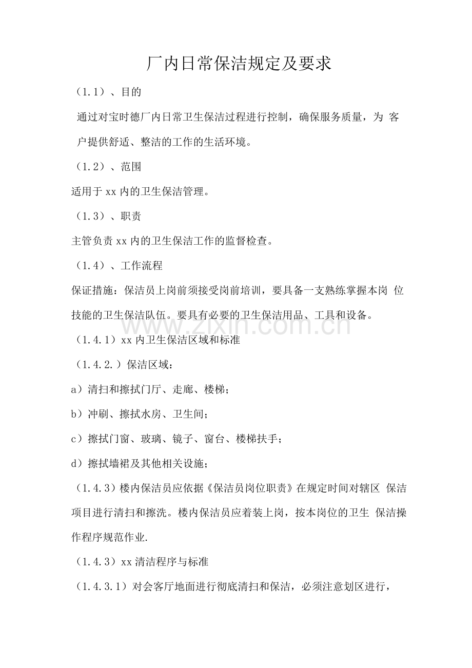 通过对宝时德厂内日常卫生保洁过程进行控制,确保服务质量,为 客户提供舒适、整洁的工作的生活环境。