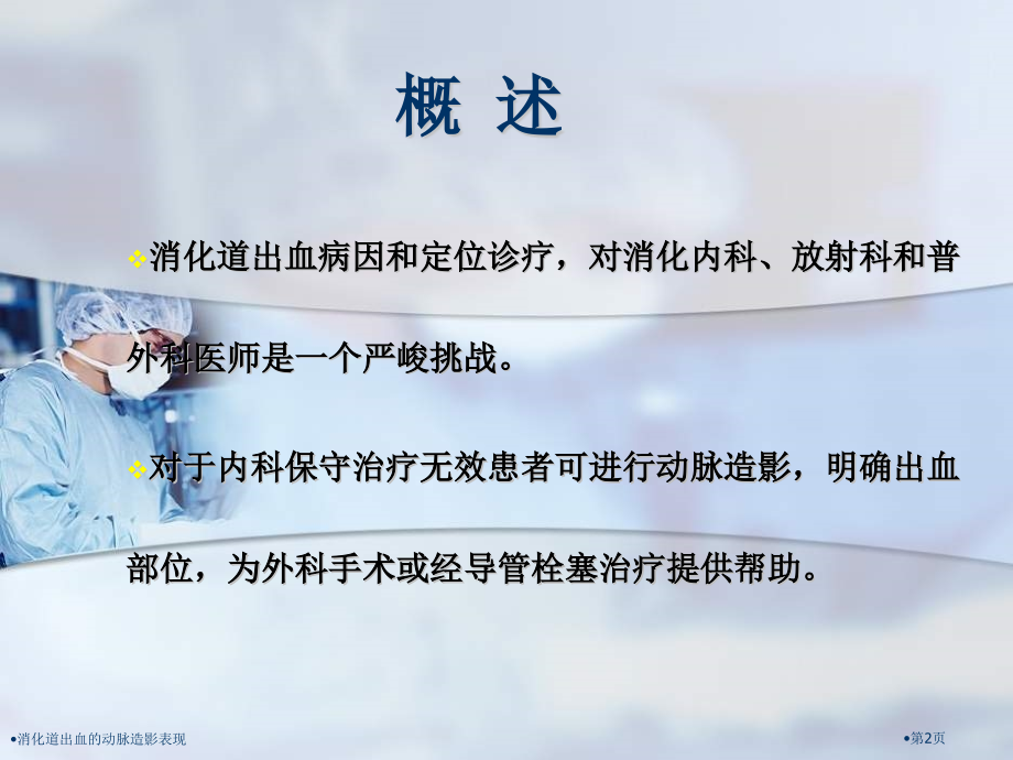 单击此处编辑标题样式,单击此处编辑母版文本样式,第二级,第三级,第四级,第五级,#,消化道出血的动脉造影表现,消化道出血的动脉造影表现,第1页,概 述,消化道出血病因和定位诊疗,对消化内科、放射科和普外科医师是一个严峻挑战。,对于内科保守治疗无效患者可进行动脉造影,明确出血部位,为外科手术或经导管栓塞治疗提供帮助。,消化道出血的动脉造影表现,第2页,资料与方法,临床资料,:,1998年200,7,年,消化道大出血患者,79,例,经主动内科保守治疗效果欠佳。为明确出血部位或准备行栓塞治疗行动脉造影。男,48,例,女性,31,例。年纪:8-8,0,岁,平均,54,岁。,方法,:,患者在输血,输液等支持下分别行腹腔动脉干,肠系膜上动脉,肠系膜下动脉,双侧髂内动脉造影(,DSA)。,发觉可疑病变行超选择造影或传统血管造影(非减影)。,消化道出血的动脉造影表现,第3页,结 果,22,例,(27.8%),造影剂外溢。,25,例,(31.6%),血管结构异常,(,包含供血动脉增粗,血管迂曲,富血管,动脉瘤,,血管受侵,静脉早显,).,32,例(,40.5%,)造影隐性,.,47,(,59.5%,)例阳性,其中,25,例行外科手术治疗,证实造影诊疗。,消化道出血的动脉造影表现,第4页,32,例造影隐性患者中,2,例外科手术,,1,例为小肠淋巴瘤,,1,例为,Meckels,憩室。,1,例为结肠息肉,行内窥镜治疗。,9,例为癌,行栓塞治疗。,20,例经过内窥镜或,CT,诊疗,行止血治疗。,消化道出血的动脉造影表现,第5页,9,例病因不明患者中,,1,例,1,月后死于肾功不全,,1,例因休克死亡,,1,例,1,年后再次出血,其余经止血治疗后治愈。,消化道出血的动脉造影表现,第6页,病因及诊疗方法,病因,数目(,%,),诊疗方法,不明,9,(,11.5,),癌,18,(,22.8,),手术及,CT,平滑肌肉瘤,9,(,11.5,),手术,血管畸形,7,(,8.9,),手术及造影,溃疡,18,(,22.8,),手术及内窥镜,Meckels,憩室,2(2.5%),手术,憩室,3,(,3.8,),手术及内窥镜,炎症,1,(,1.3,),手术,动脉瘤,3,(,3.8,),造影,创伤,3,(,3.8,),淋巴瘤,1,(,1.3,),手术,Dieulafoys,病,3,(,3.8,),手术及内窥镜,息肉,2,(,2.5,),内窥镜,消化道出血的动脉造影表现,第7页,造影表现,病因(例数),供血动脉增粗,造影剂外溢,迂曲富血管,动脉瘤,动脉受侵,静脉早显,平滑肌瘤(,9,),7,4,6,2,4,血管畸形(,7,),5,1,6,2,动脉瘤(,3,),3,1,癌(,18,),7,6,5,3,7,Meckels,憩室(,2,),1,1,溃疡(,18,),1,6,3,创伤(,3,),2,Dieulafoys,病(,3,),2,1,2,2,憩室(,3,),1,1,炎症(,1,),淋巴瘤(,1,),息肉(,2,),总计(,70,),24,22,22,8,10,6,消化道出血的动脉造影表现,第8页,男,51岁,便血一天。供血动脉增粗,血管受侵紊乱。手术切除。,空肠平滑肌肉瘤,消化道出血的动脉造影表现,第9页,空肠平滑肌肉瘤,女,74岁,便血3天。供血动脉增粗,血管紊乱。手术切除。,消化道出血的动脉造影表现,第10页,dieulafoy,病栓塞治疗,男,64岁,呕血,黑便5天。胃左及胃右动脉增粗,紊乱。,PVA,颗粒栓塞,治愈。,消化道出血的动脉造影表现,第11页,结肠血管畸形 供血动脉增粗,紊乱血管团,引流静脉显影。,结肠血管畸形栓塞治疗,女 27岁 便血2天,栓塞治疗后,未复发。,消化道出血的动脉造影表现,第12页,回肠,Meckel,憩室出血(手术证实)造影剂外溢,肠腔显影。,此种憩室来自胚胎期脐肠管(,ductus omphaloentericus),,正常时该管在胚胎第8周即行退化消失,但此时则不退化,残留而成憩室。,回肠,Meckel,憩室出血,男 8岁 便血3天,消化道出血的动脉造影表现,第13页,persistent vitellointestinal artery(Meckels vessel)could be visualized on the arteriogram.In most patients,it appeared as a long vessel with few or no branches that extended beyond the vasa recta of the adjacent ileal arteries,Meckels diverticulum:angiographic findings in 16 patients.AJR 1998;170:1329-1333.,消化道出血的动脉造影表现,第14页,男,50岁,胆管癌术后4年,吻合口复发,胆道支架置入术后7月,便血1天。可见支架影,肝右动脉受侵。超选造影,造影剂外溢,肠腔显影。钢圈及明胶海绵栓塞,治愈。,胆管癌术后复发出血 栓塞治疗,消化道出血的动脉造影表现,第15页,胆管结石术后,黑便,2,天,,肝右动脉动脉瘤。栓塞治愈。,动脉瘤出血,栓塞治疗,消化道出血的动脉造影表现,第16页,男,,22,岁,呕血,1,天,消化道出血的动脉造影表现,第17页,消化道出血的动脉造影表现,第18页,消化道出血的动脉造影表现,第19页,讨 论,消化道出血病因包含:息肉,肿瘤,炎症性病变,憩室,先天性血管病,肠套叠,恒径小动脉病变(,dieulafoy lesion),,动脉瘤,创伤,食管胃底静脉曲张等。,消化道出血的动脉造影表现,第20页,造影表现,造影剂外逸,。,肿瘤:肿瘤染色,动静脉瘘,动脉,静脉,受压移位,受侵。,血管发育不良,。,动脉瘤,。,消化道出血的动脉造影表现,第21页,消化道出血血管造影表现及其临床病理关系,表现,临床关系,造影剂外溢,活动性出血(,0.5ml/hr,),动脉瘤,医源性损伤,外伤,胰腺炎(蛋白水解作用,假性囊肿),霉菌病,动脉炎(,结节性多动脉炎等),胶原组织疾病(,Ehler Danlos,综合征),动静脉分流,Dieulafoy,病,动静脉畸形及瘘,,Rendu-Weber-Osler,(,HTT,)毛细管扩张,局部,/,点状粘膜充血,溃疡,小动脉静脉畸形,,Rendu-Weber-Osler,(,HTT,)毛细管扩张,节段性粘膜充血,术后表现,胃十二指肠炎,,门静脉高压性胃病,结核,/,肉芽肿(,结节病),新生血管,/,粘膜外充血,良性肿瘤(平滑肌瘤),恶性肿瘤(癌,淋巴瘤等),转移性肿瘤(肾细胞癌等),血管湖,恶性,转移性肿瘤,海绵状,/,毛细血管血管血管瘤,结核,动脉壁改变,肿瘤侵蚀,蛋白水解性侵蚀(胰腺炎),动脉硬化,消化道出血的动脉造影表现,第22页,造影剂外溢为活动性出血表