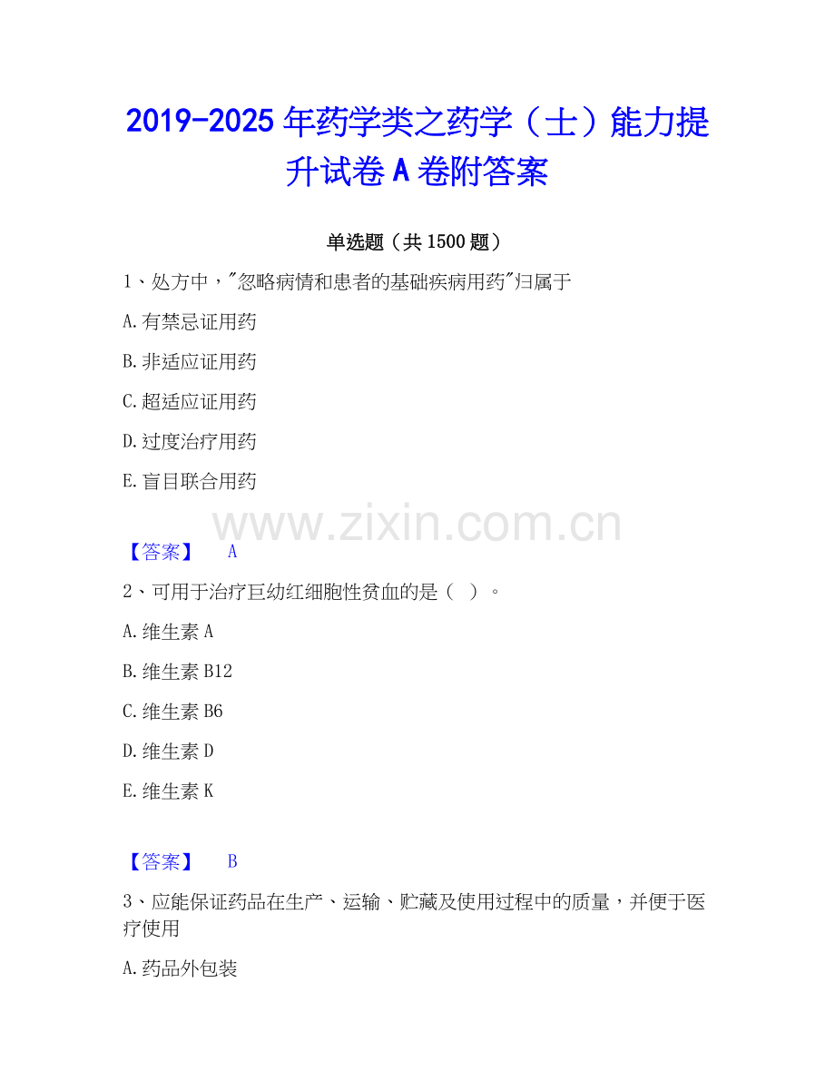 2019-2025年药学类之药学(士)能力提升试卷A卷附答案