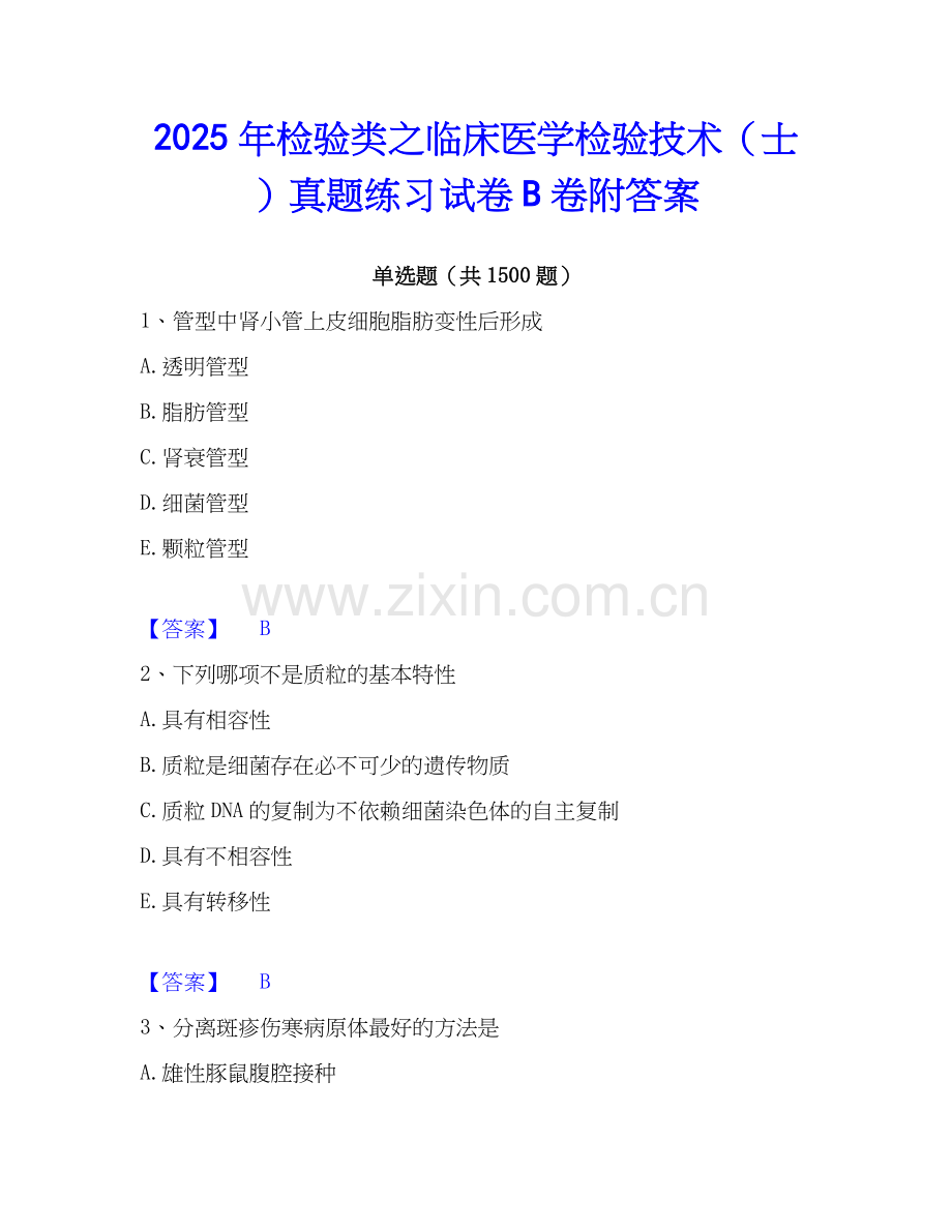 2025年检验类之临床医学检验技术(士)真题练习试卷B卷附答案
