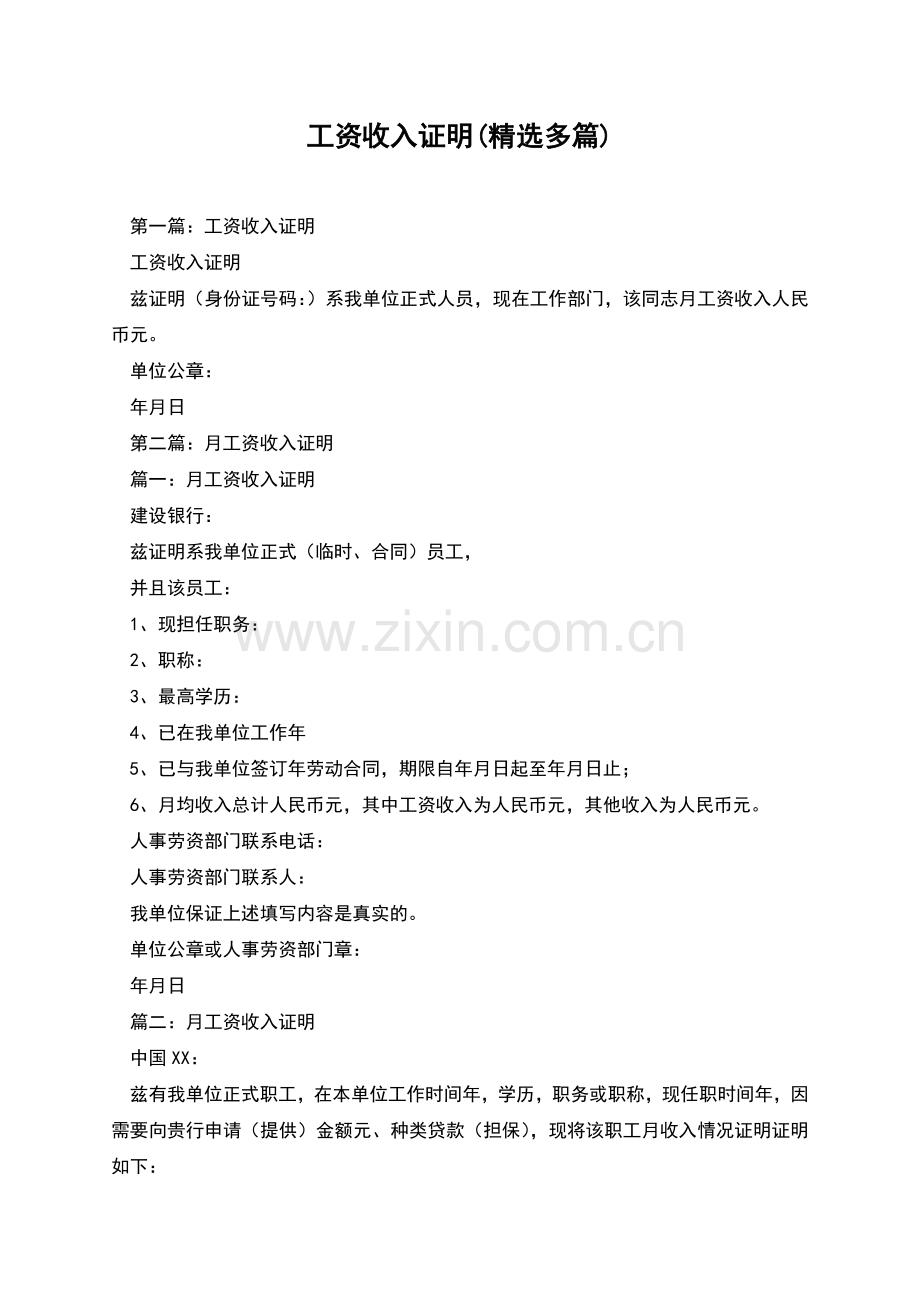 工资收入证明