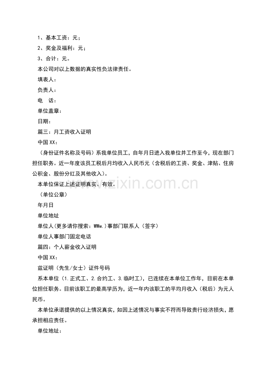篇四:个人薪金收入证明