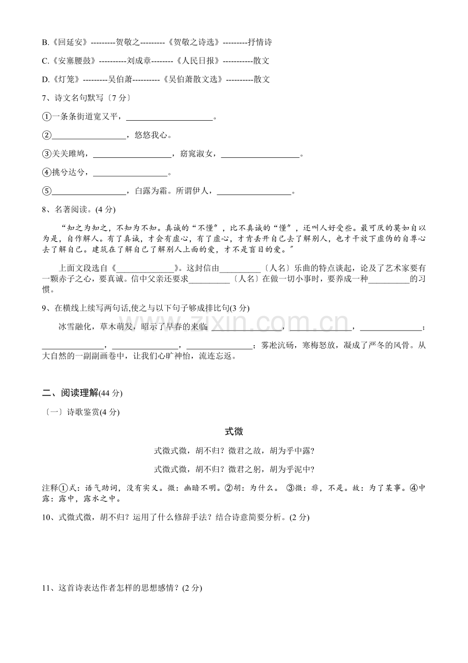 11、 这首诗表达作者怎样的思想感情?(2分)