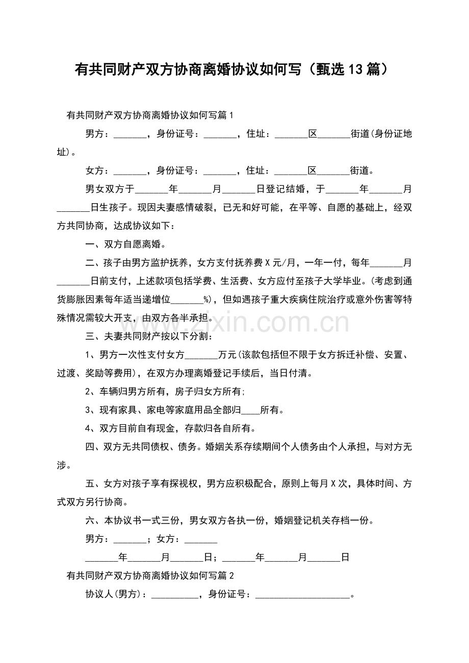 有共同财产双方协商离婚协议如何写(甄选13篇)