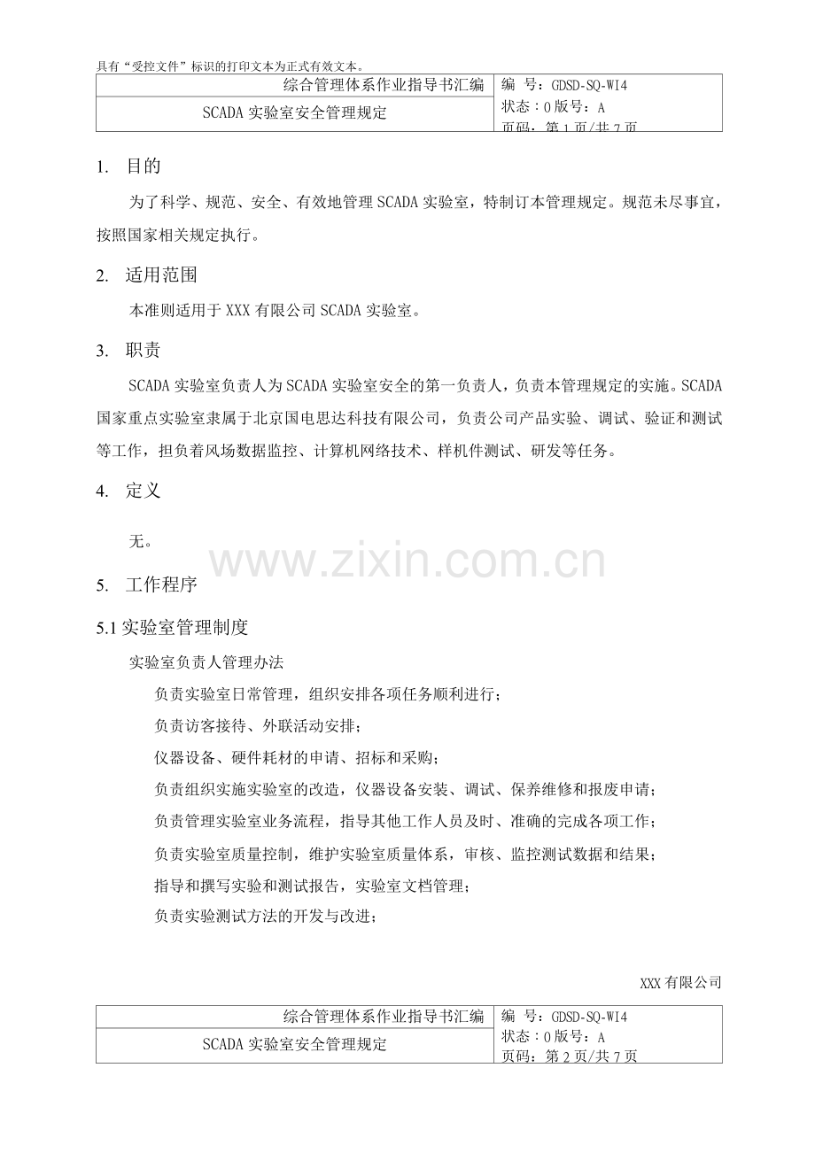 为了科学、规范、安全、有效地管理SCADA实验室,特制订本管理规定。规范未尽事宜,按照国家相关规定执行。
