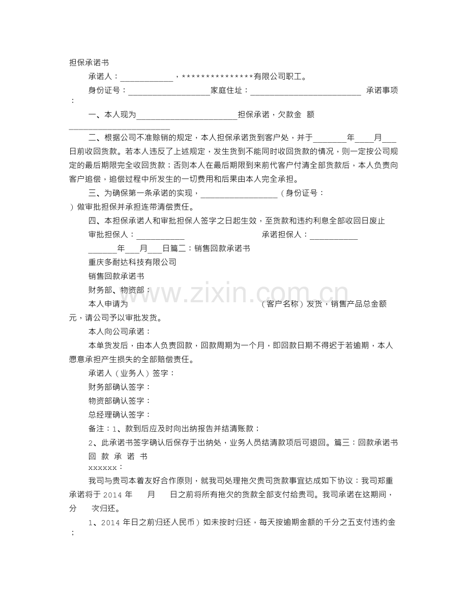 ______年___月___日篇二:销售回款承诺书